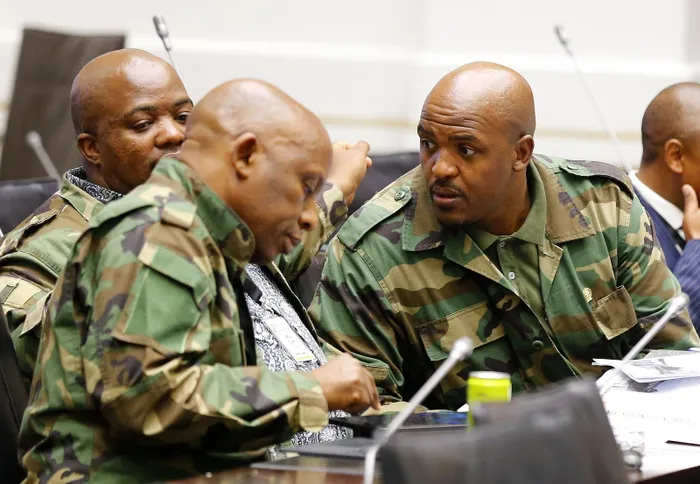 Members of Parliament David Skosana, Sibonelo Nomvalo and Thulani Shongwe, who represent the MKP on the committee probing the allegations Mkhwanazi made of police corruption and interference.