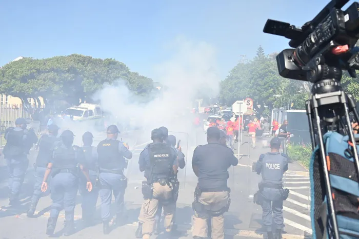 Tensions erupted outside Milnerton High School on Wednesday morning as police fired stun grenades to disperse angry parents, political activists and community members demanding justice for a 16-year-old Grade 10 learner brutally assaulted in a bullying incident captured on video.