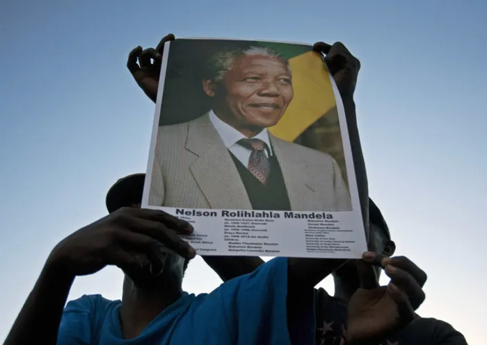 Mourners hold up a Nelson Mandela poster during a tribute event in his honour at the Cape Town City Hall on Sunday. Picture: Mark Wessels Mourners hold up a Nelson Mandela poster during a tribute event in his honour at the Cape Town City Hall on Sunday. Picture: Mark Wessels