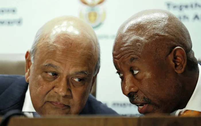 New Finance Minister Pravin Gordhan (left) chats with Reserve Bank governor Lesetja Kganyago during a media briefing in Pretoria on Monday. Picture: Siphiwe Sibeko New Finance Minister Pravin Gordhan (left) chats with Reserve Bank governor Lesetja Kganyago during a media briefing in Pretoria on Monday. Picture: Siphiwe Sibeko
