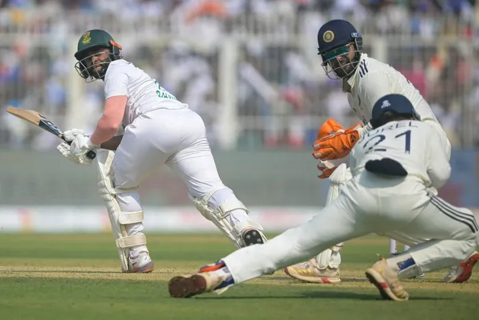 Proteas captain Temba Bavuma is caught on the opening day of the first Test against India at Eden Gardens in Kolkata on Friday.
