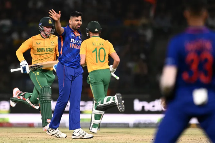 South Africa's Rassie van der Dussen (L) and David Miller run between the wickets as India's Avesh Khan (2L) watches during the first Twenty20 international cricket match at the Arun Jaitley Stadium in New Delhi on Thursday South Africa's Rassie van der Dussen (L) and David Miller run between the wickets as India's Avesh Khan (2L) watches during the first Twenty20 international cricket match at the Arun Jaitley Stadium in New Delhi on Thursday. Photo: Jewel Samad/AFP