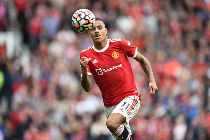 Mason Greenwood of Manchester United in action during their English Premier League soccer match against Aston Villa at Old Trafford in Manchester on 25 September 2021 FILE - Mason Greenwood of Manchester United in action during their English Premier League soccer match against Aston Villa at Old Trafford in Manchester on 25 September 2021. Photo: Peter Powell/EPA