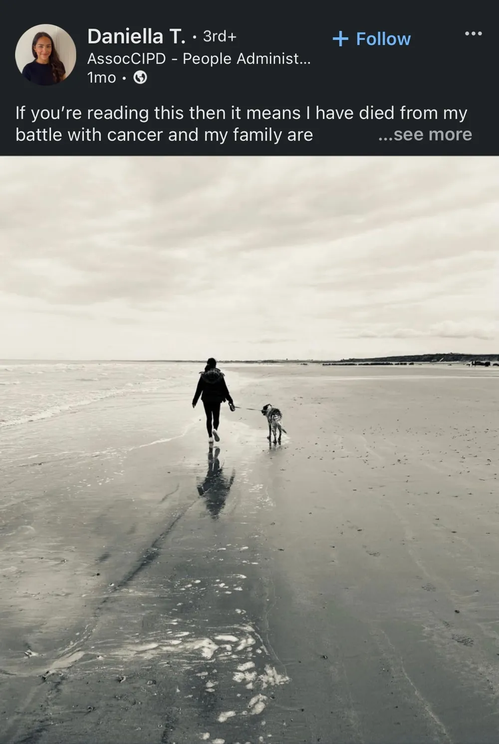 On February 23, her family fulfilled her wish. They turned to Facebook and LinkedIn where life's milestones are often celebrated, to share a profound post that Thackray had prepared.