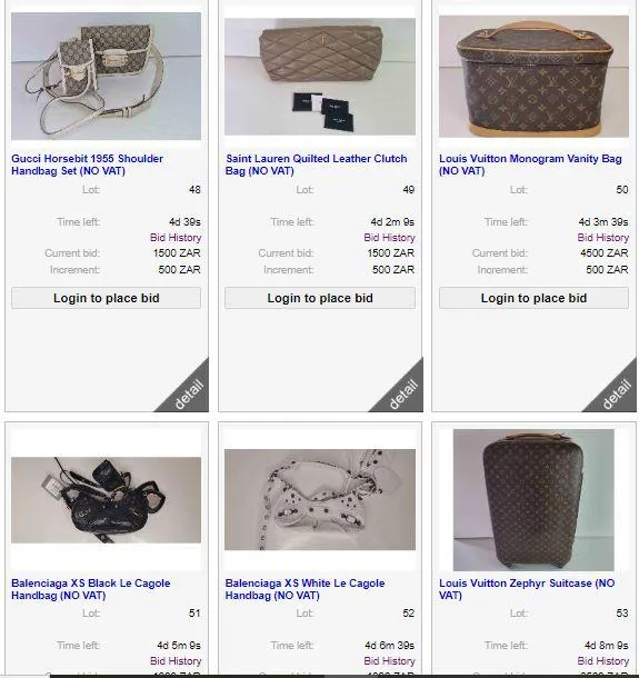 Since bidding opened on Friday, October 10, the highest offers so far have reached R6,500, placed on two Louis Vuitton Zephyr suitcases and a Louis Vuitton Boîte Pharmacie vanity case. In total, 18 designer pieces are available, with starting bids beginning at R1,000.