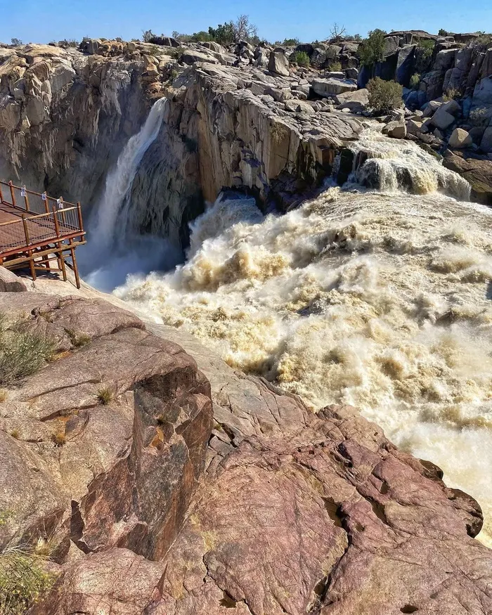 Witness the mighty Orange River's waters overflow at Augrabies Falls in summer.